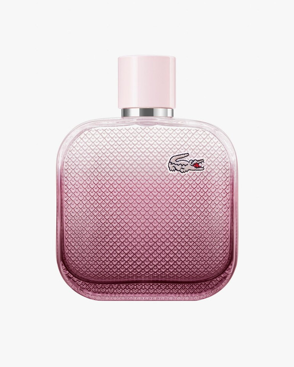 Lacoste Rose Eau Intense دارای همان طراحی بطری با سایه های محو شده صورتی است.
